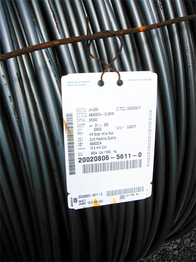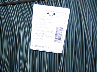 El alambrón tiene múltiples exigencias relacionadas con una solución de código de barras. Las temperaturas después del enfriamiento aún pueden estar en los 400C (750F) cuando la etiqueta es fijada. Esta tiene que soportar procesos adicionales como baños químicos. Las condiciones ambientales durante el transporte pueden ser severas, entonces la etiqueta debe estar fijada seguramente para evitar su caída durante el desplazamiento. ITI Industrial Supplies provee una gama de diferentes ganchos y etiquetas para suplir los requerimientos mencionados anteriormente. La tecnología de capa protectora protege la impresión y repele agentes químicos incluso cuando se imprime con impresoras estándar de oficina. +Impresión con impresoras estándar de oficina que cuestan menos de $1000. Siéntase en libertad de contactarnos si tiene preguntas